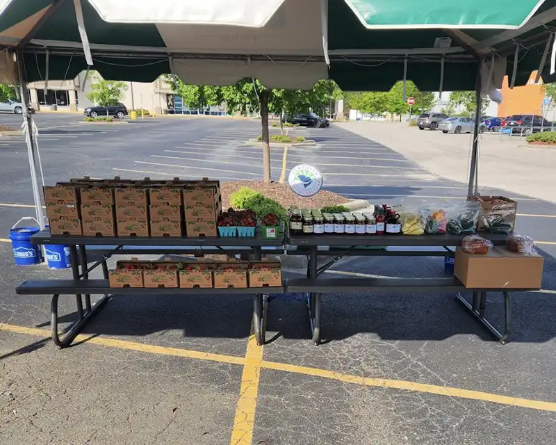 Each tent has two tables to place strawberries and product, see picture below for an example of how to set up for best display. Wipe down the tables daily, pick up any trash. If it has rained make sure there is no water sitting on the tent (don’t want customers getting wet) should be completed when you arrive. Then put out all of the strawberries/product on the tables. All strawberries/product should be on the table, not left in your car.