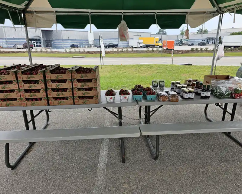 Tent hours are from 10am-6pm daily, Monday-Sunday. Arrive at the Farm daily by 8:45am; in order to pick up strawberries, product, supplies (bags, quart/half gallon containers/handles), daily envelope, cash bags (each has $200, pen, additional card machine tape and a highlighter for insuring bills are not counterfeit) and card machine/battery pack with cord. This will allow you to be at your tent by 9:30am to have it set up and ready to open by 10am.