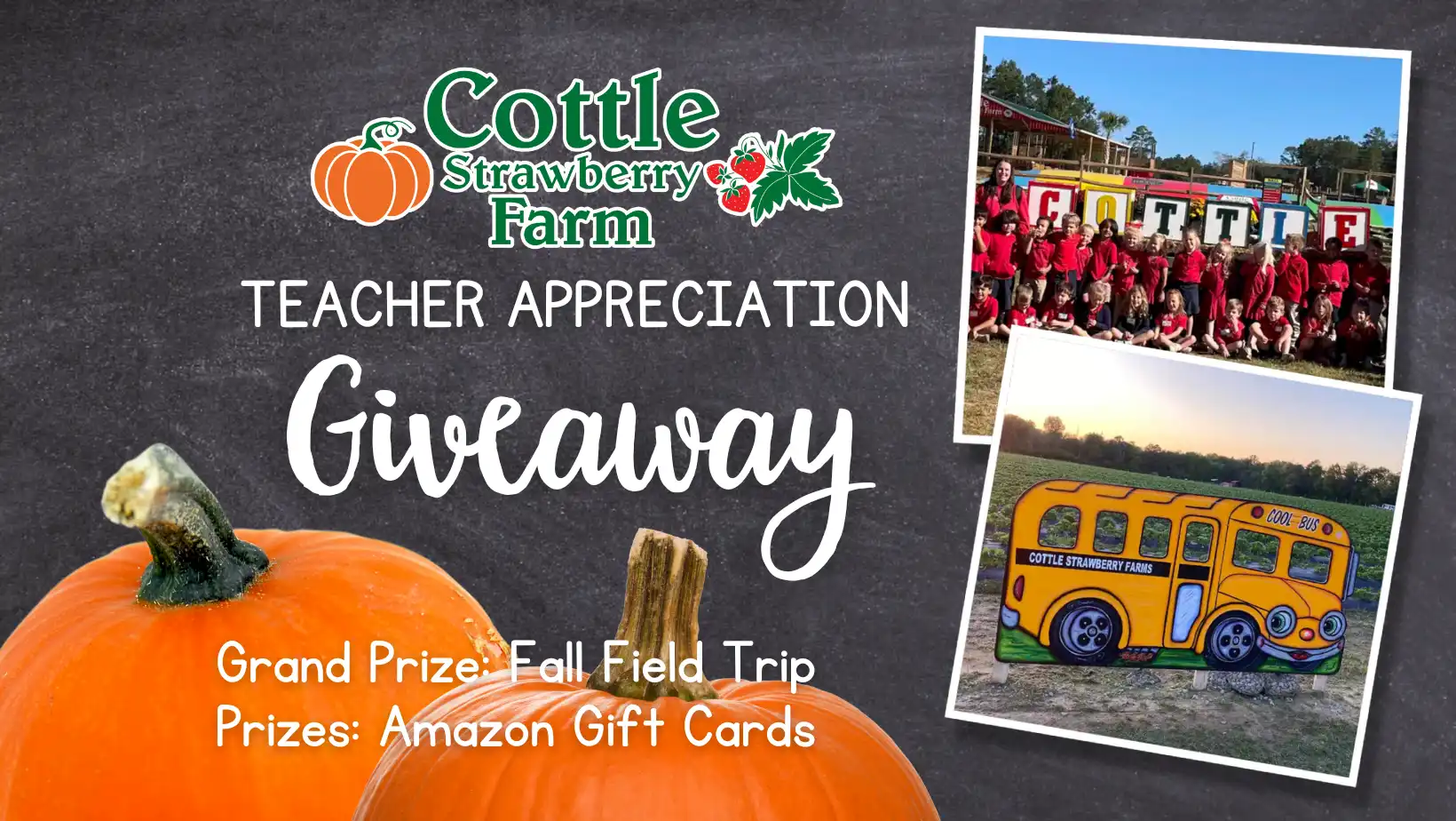 Hey teachers – this one’s for YOU! We’re giving away a FREE Fall Field Trip for one lucky classroom during our 2025 season! We will also be giving away Bonus Giveaways to help teachers with their classroom wish lists!